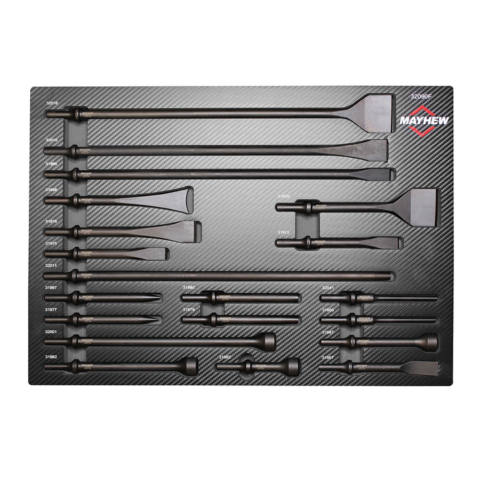 Mayhew Steel Products, Inc. (Mayhew Tools) announces the release of their latest innovation: the 20 Pc. Pneumatic Set in a custom cut foam tray, part number 32090F. This new set is engineered to meet the rigorous demands of professionals seeking high performance, durability, and organization in their tools.